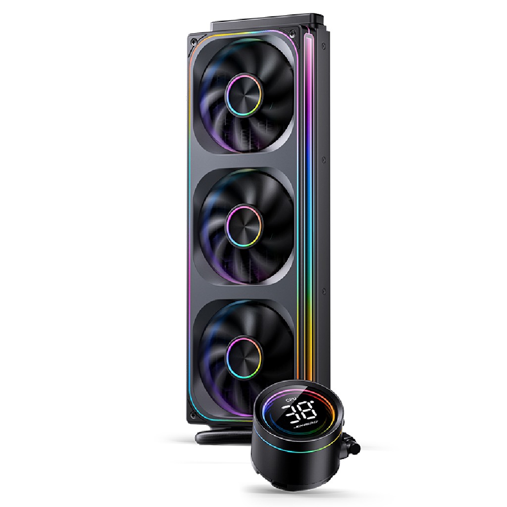 3.6W, 700~2400RPM, 3 * ARGB Fan 120x120x28mm , макс.поток 21.46-62.4CFM(1 Fan), шум Fun: 21.3-37.3dB(A), Pump:72mmx85.3mmx57.5mm, Radiator: 393x120x27mm, Hydraulic Bearing