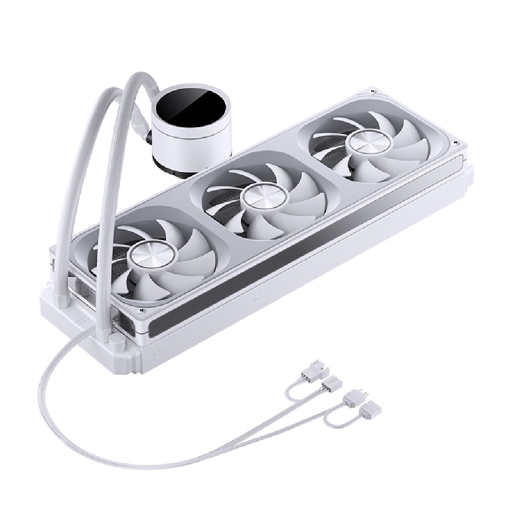 3.6W, 700~2400RPM, 3 * ARGB Fan 120x120x28mm , макс.поток 21.46-62.4CFM(1 Fan), шум Fun: 21.3-37.3dB(A), Pump:72mmx85.3mmx57.5mm, Radiator: 393x120x27mm, Hydraulic Bearing