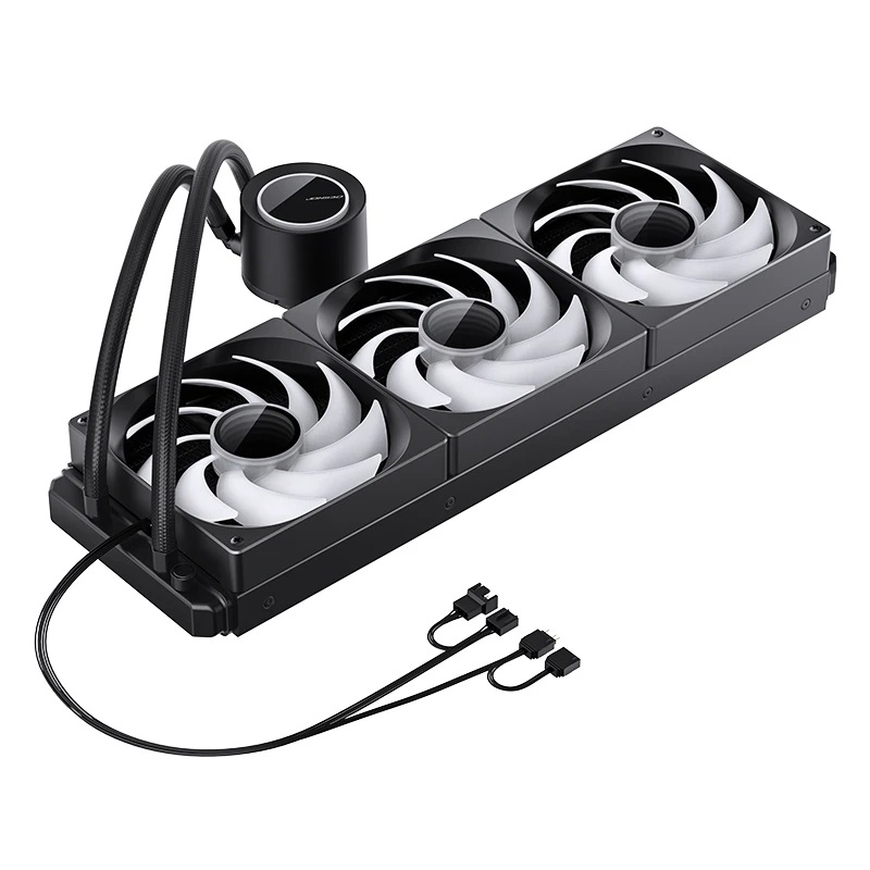 3.6W, 800~1800RPM, 3 * ARGB Fan 140x140x25mm , макс.поток 36.8-93.73CFM(1 Fan), шум Fun: 20.3-36.2dB(A), Pump:74mmx85.3mmx54.55mm, Radiator: 455x140x54.5mm, Hydraulic Bearing