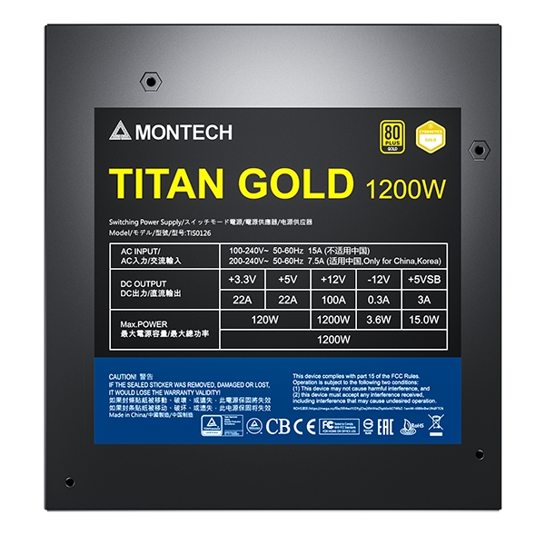 Блок питания Montech TITAN GOLD 1200W / ATX 3.0, APFC, 80 PLUS Gold, Half Bridge LLC, DC-DC, Japan caps, 135mm fan, full modular / TIS0126
