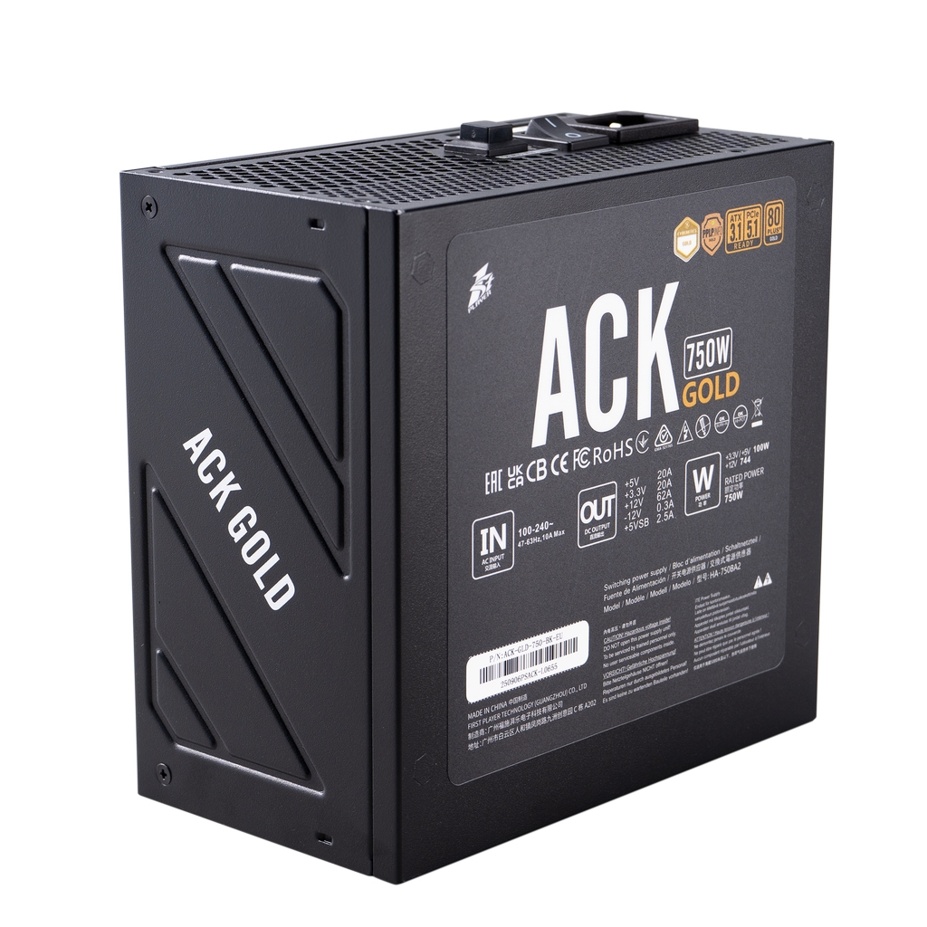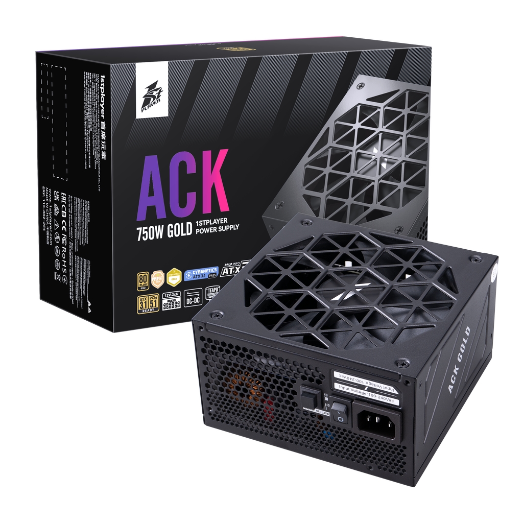 Блок питания 1STPLAYER ACK GOLD 750W Black / ATX 3.1, PCle 5.1, APFC, 80 PLUS Gold, LLC+DC-DC, full Teapo caps, 140mm fan, full modular / HA-750BA2-BK