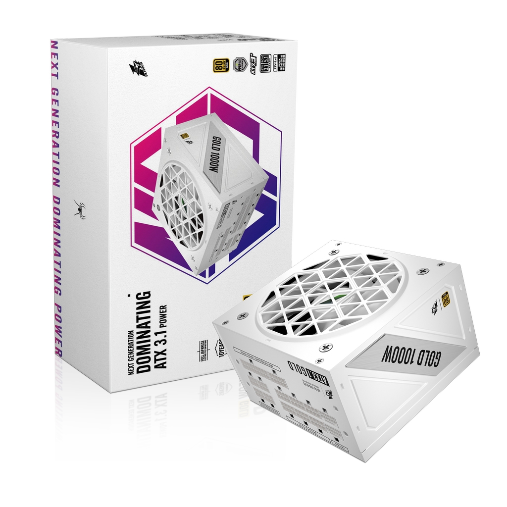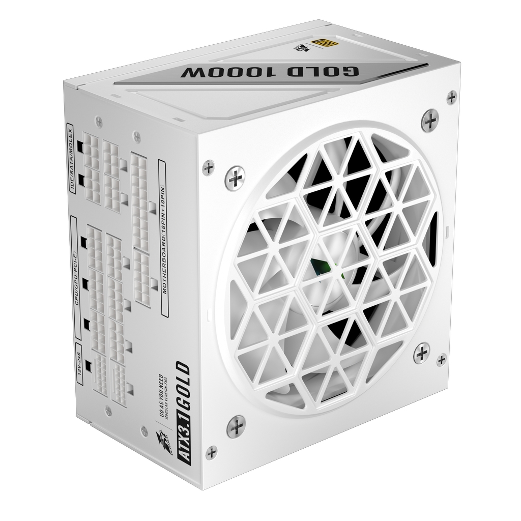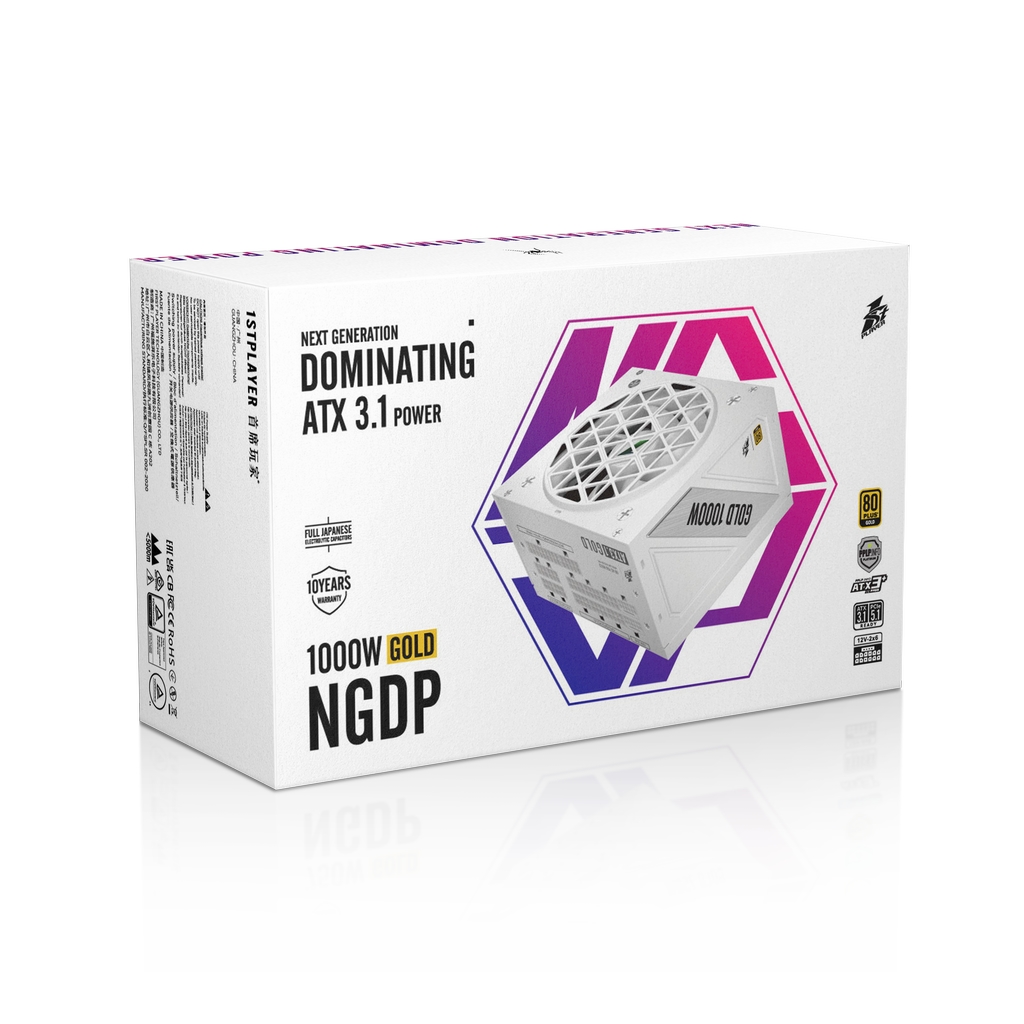 Блок питания 1STPLAYER NGDP GOLD 1000W White / ATX 3.1, APFC, 80 PLUS Gold, LLC+DC-DC, full Japan solid-state caps, 120mm fan, full modular / HA-1000BA4-WH