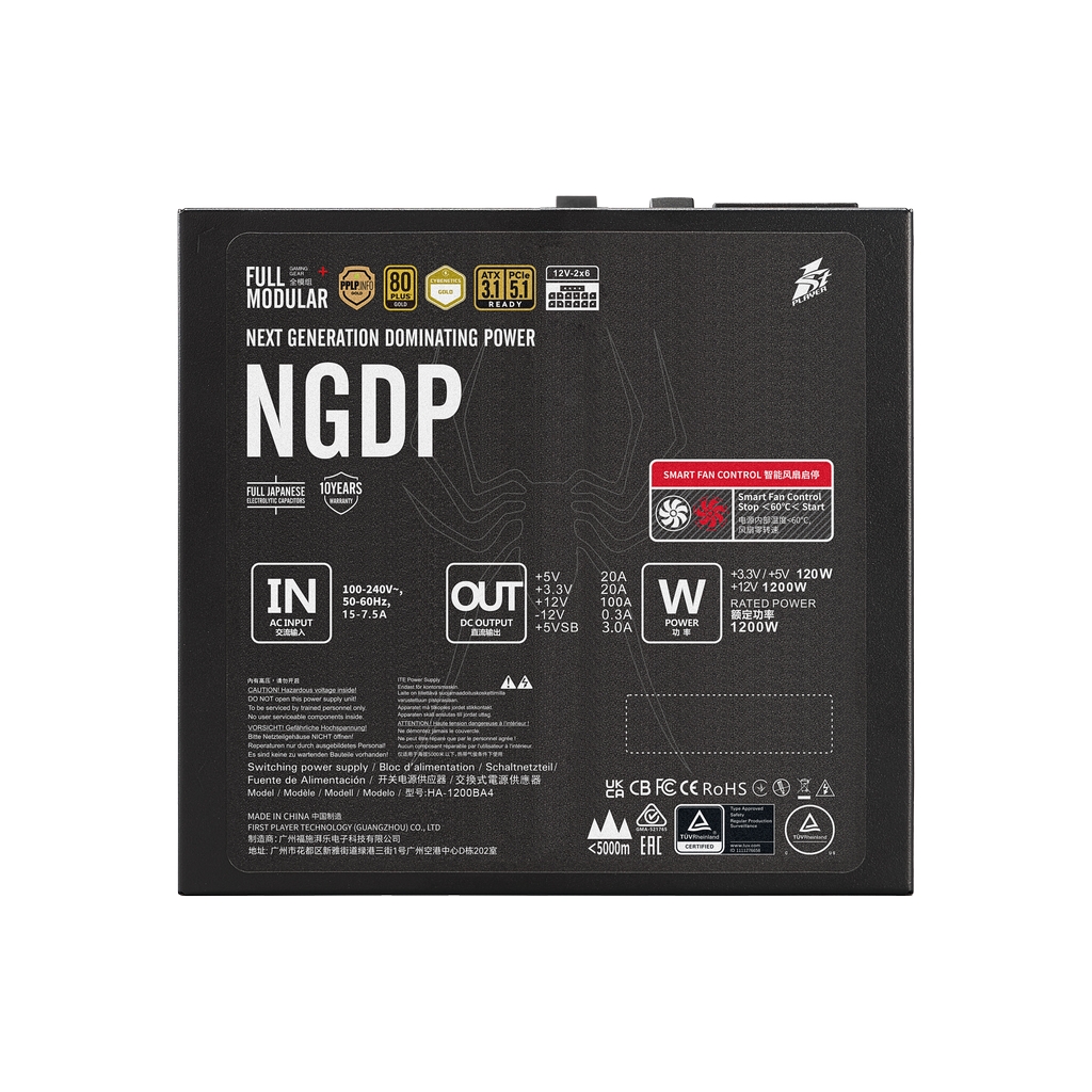 Блок питания 1STPLAYER NGDP GOLD 1200W Black / ATX 3.1, PCle 5.1, APFC, 80 PLUS Gold, LLC+DC-DC, full Japan solid-state caps, 120mm fan, full modular / HA-1200BA4