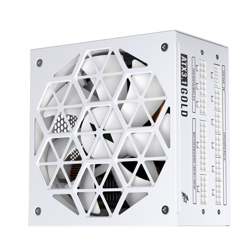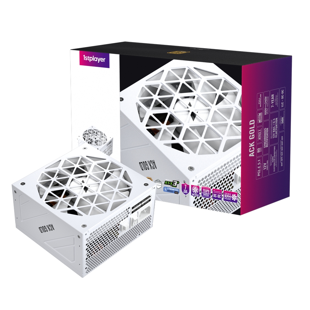 Блок питания 1STPLAYER ACK GOLD 850W White / ATX 3.1, PCle 5.1, APFC, 80 PLUS Gold, LLC+DC-DC, full Teapo caps, 140mm fan, full modular / HA-850BA2-WH