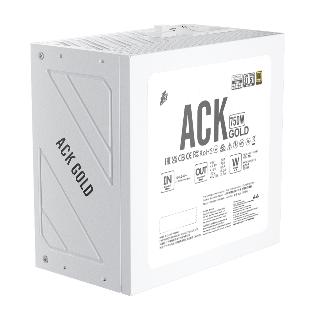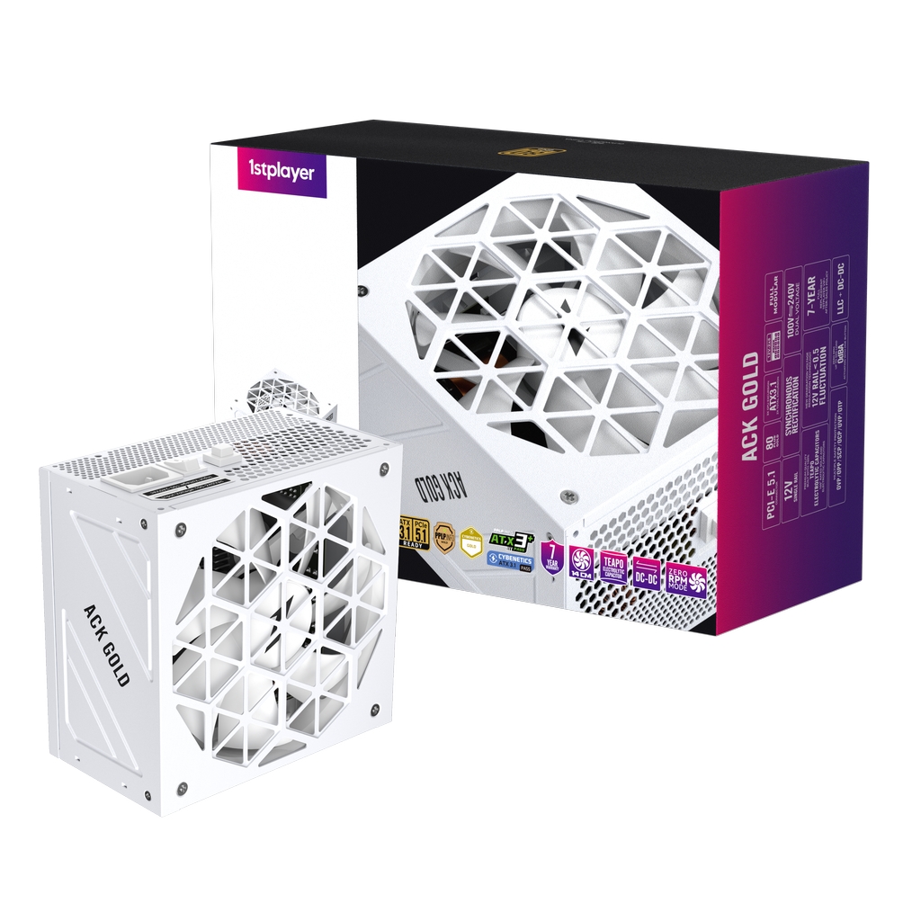 Блок питания 1STPLAYER ACK GOLD 750W White / ATX 3.1, PCle 5.1, APFC, 80 PLUS Gold, LLC+DC-DC, full Teapo caps, 140mm fan, full modular / HA-750BA2-WH