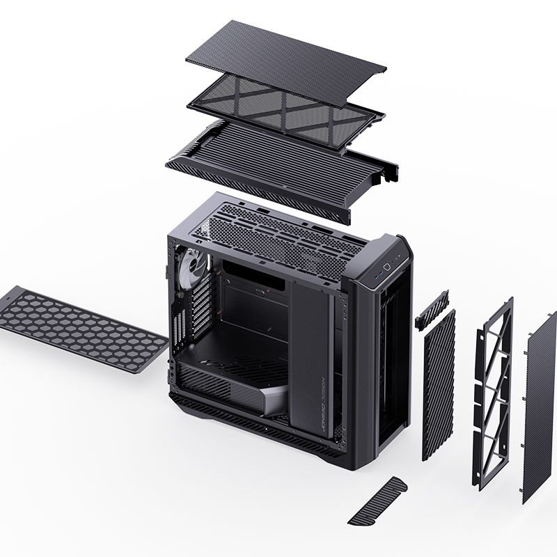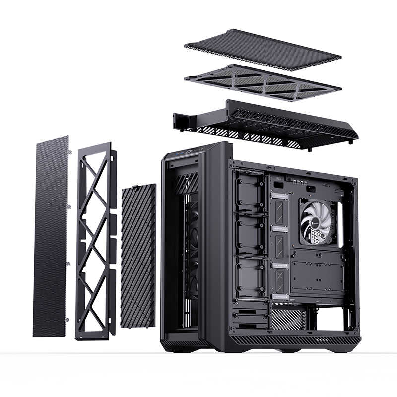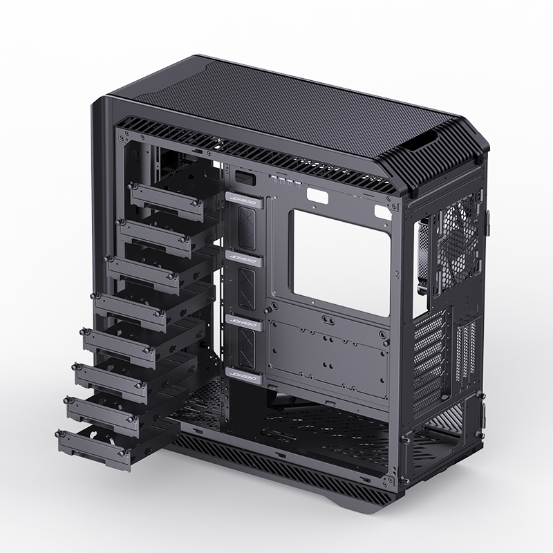 EATX, PSU ATX on down, Cooler height 190mm, VGA 340-480mm; 3,5*10(0), 2,5*11(0); USB3.0*2, 1*USB3.2 Type-C, Audio; PCI *8+3, Include fans: 2*140mm PWM on Front, 1*140mm PWM ARGB on rear; 250mm(W) * 620mm(D) * 586mm(H), 11kg, Осн.структура - Al 2.0mm