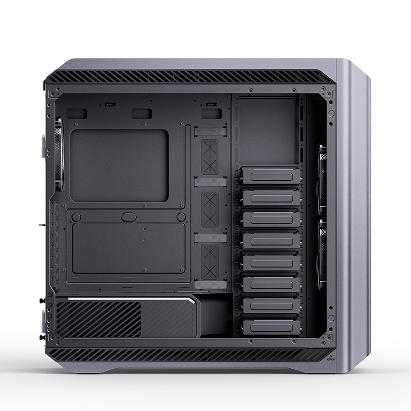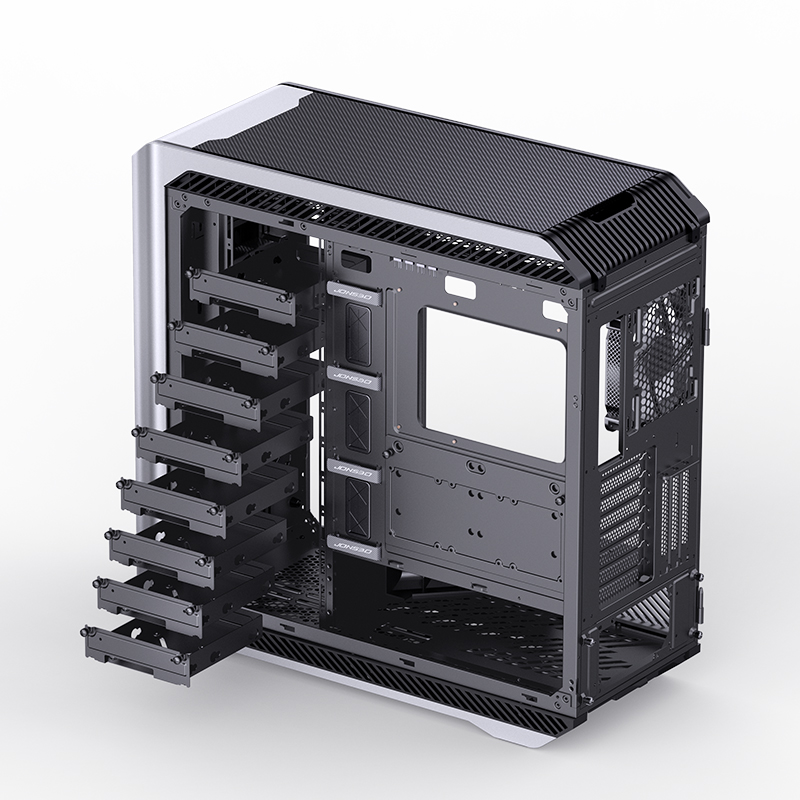 EATX, PSU ATX on down, Cooler height 190mm, VGA 340-480mm; 3,5*10(0), 2,5*11(0); USB3.0*2, 1*USB3.2 Type-C, Audio; PCI *8+3, Include fans: 2*140mm PWM on Front, 1*140mm PWM ARGB on rear; 250mm(W) * 620mm(D) * 586mm(H), 11kg, Осн.структура - Al 2.0mm