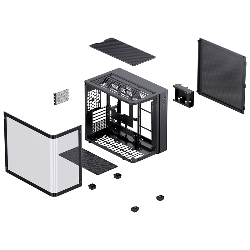 mini-ITX, micro-ATX, ATX, PSU ATX on back wall, Cooler height 165mm, VGA 420mm; 3,5*2(1), 2,5*1(1); Type-C*1,USB3.0*2, Audio*1+ Mic*1(2in1); PCI *7, 288mm(W)*438mm(D)*415mm(H), 7.3kg, 0.7mm steel