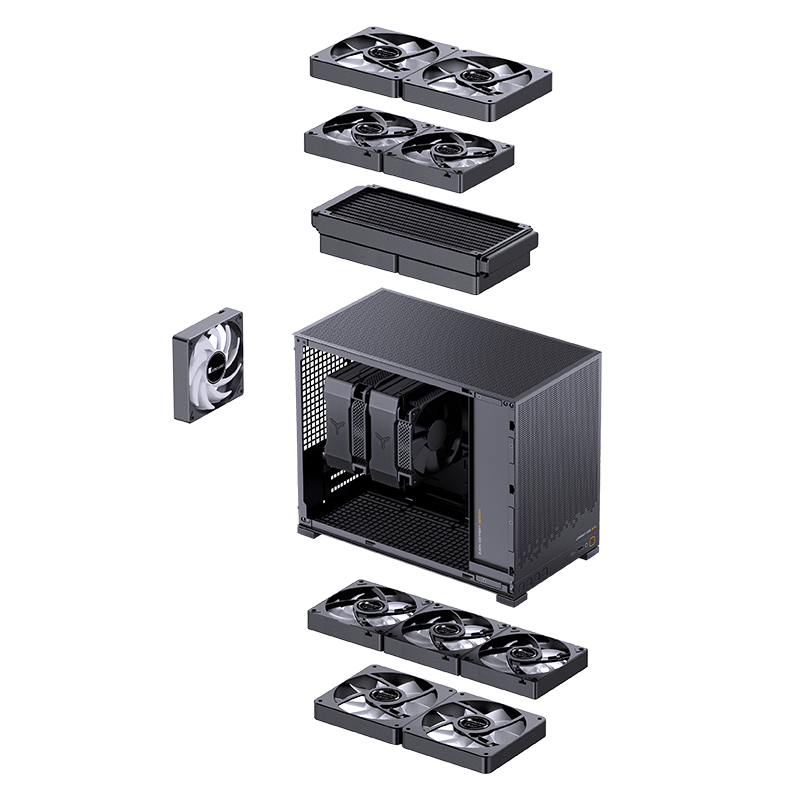 mini-ITX, micro-ATX, PSU ATX on Front, Cooler height 164mm, VGA 365mm; 3,5*1, 2,5*2; USB3.0*1, 1*USB Type-C, Audio; PCI *4, 207mm(W) * 384mm(D) * 302mm(H), 5.5kg, Основная структура - Steel 0.7mm+0.8mm