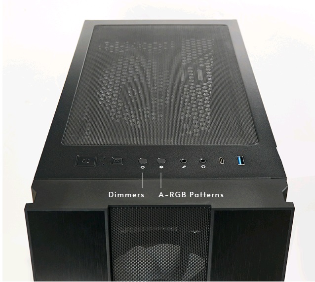 ATX, Cooler height 170mm, VGA 320mm, PSU is down position, 3,5*2, 2,5*2, USB 3.1*1, Type-C*1, Audio*1, Mic*1, RGB Brightness Button, RGB Modes Button, PCI *7, 4xARGB RAINBOW FANS
