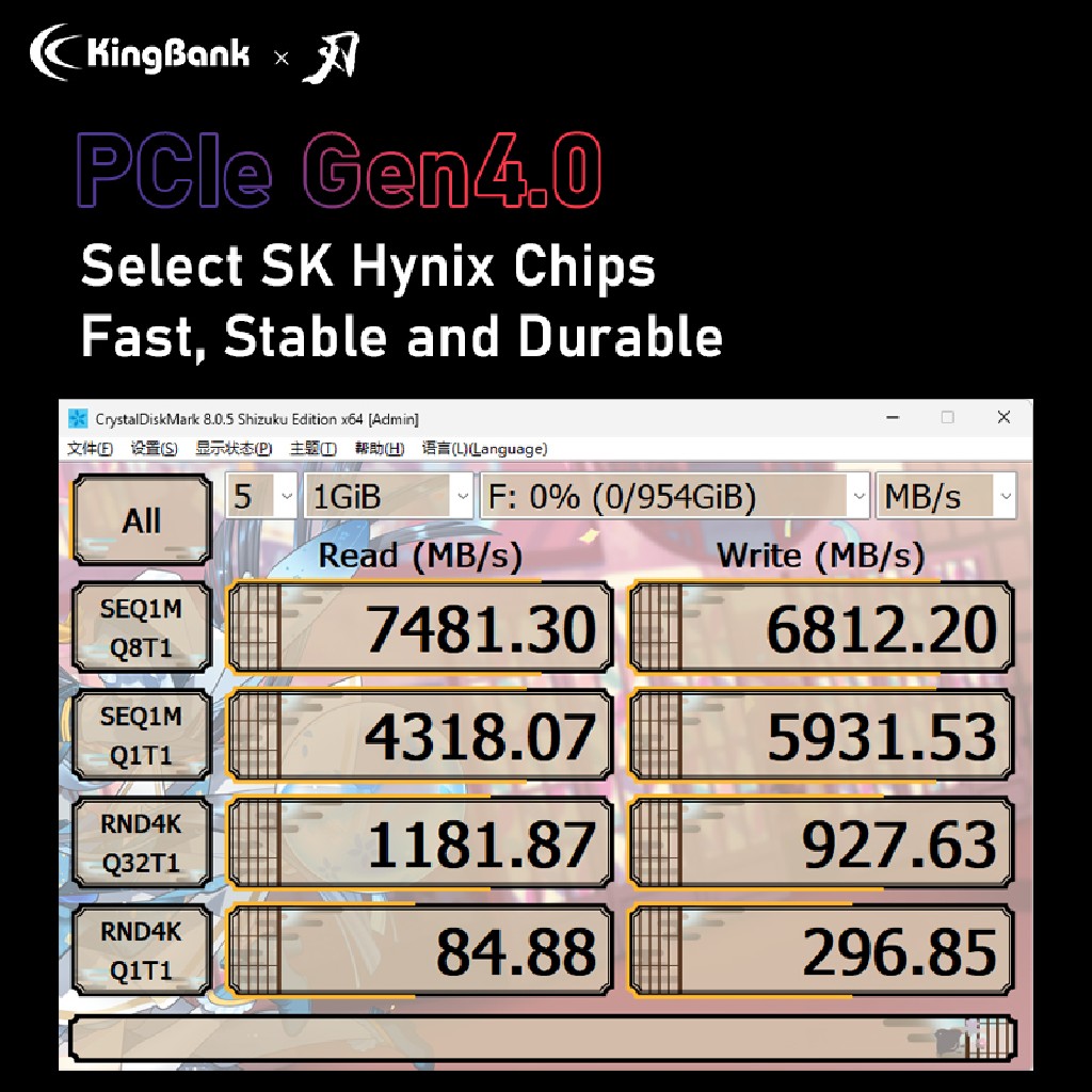 M.2 22x80 ; Sequential Read: 7400MB/s; Sequential Write: 6800MB/s; 4 channel; NVMe Gen4 x 4