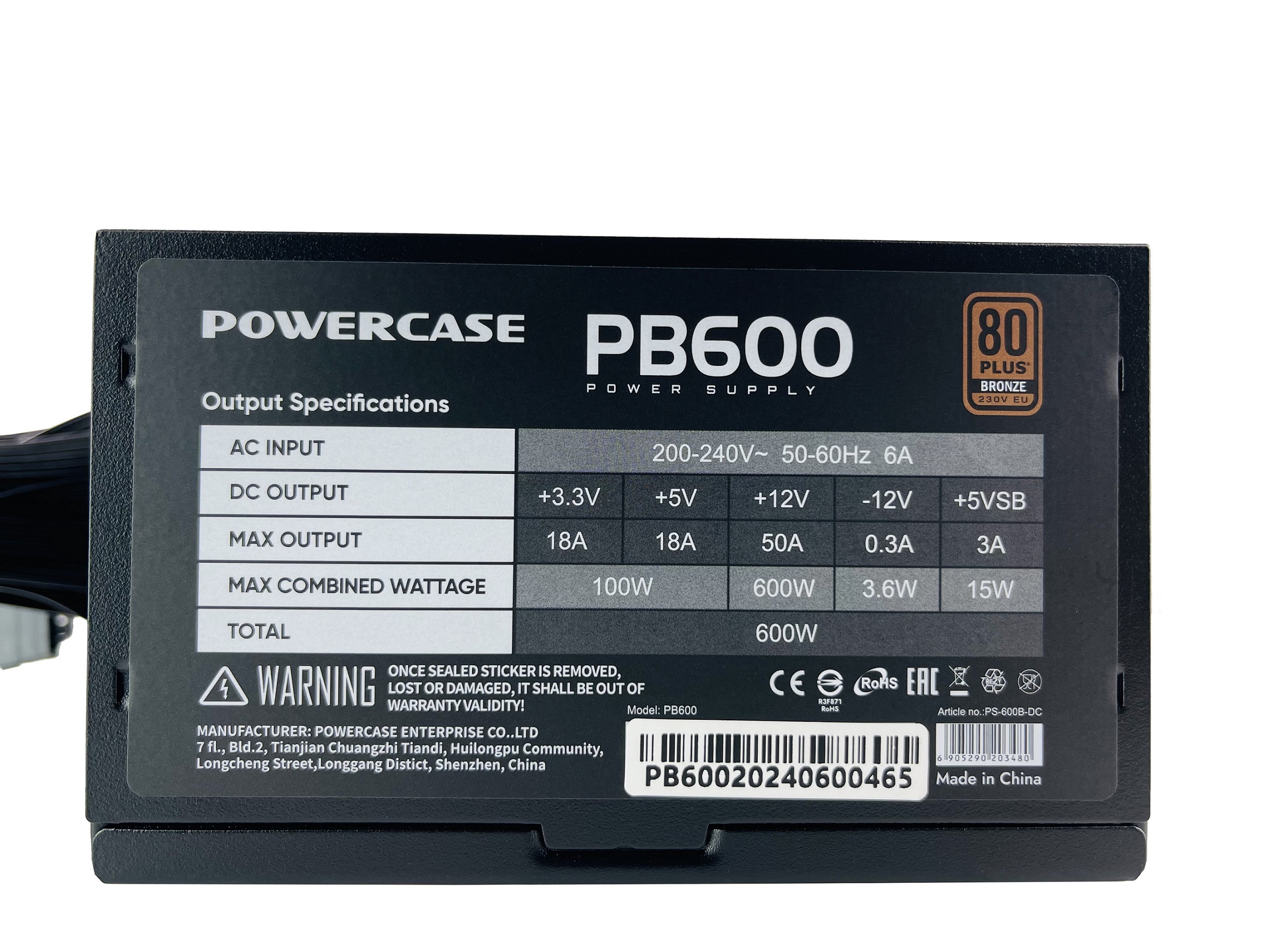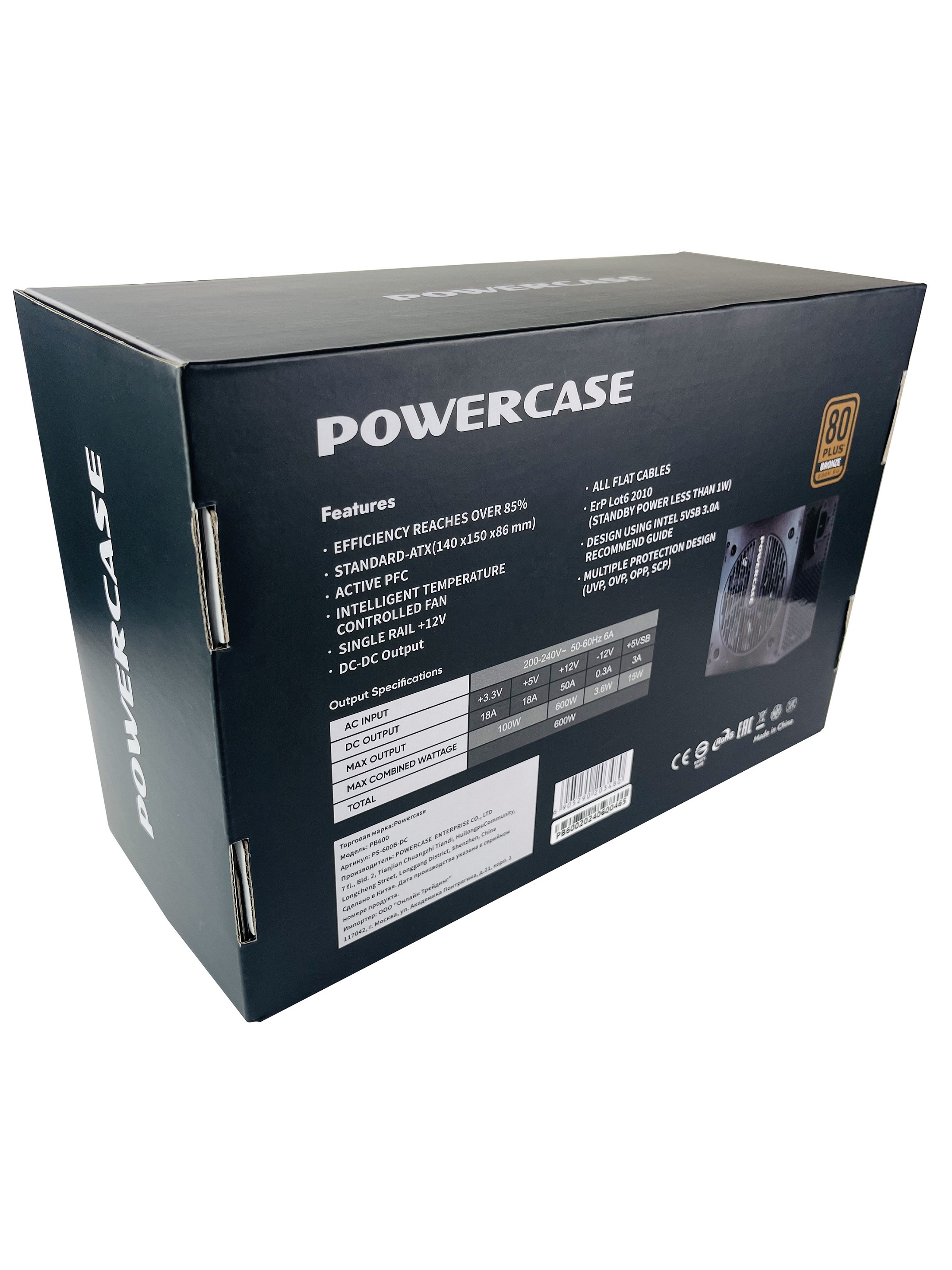 Блок питания Powercase PB600 (80 Plus Bronze, ATX 2.31, 600W, APFC, DC-DC, 120mm Fan) / PS-600B-DC