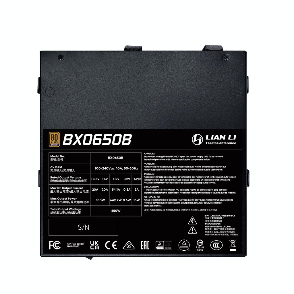 Блок питания Lian Li BX0650B / Black / ATX 3.1, 650W, 80 PLUS Bronze, PCIe 5.1, APFC, DC-DC, 135mm FDB Fan, Non Modular / G9P.BX0650B.B000.RU
